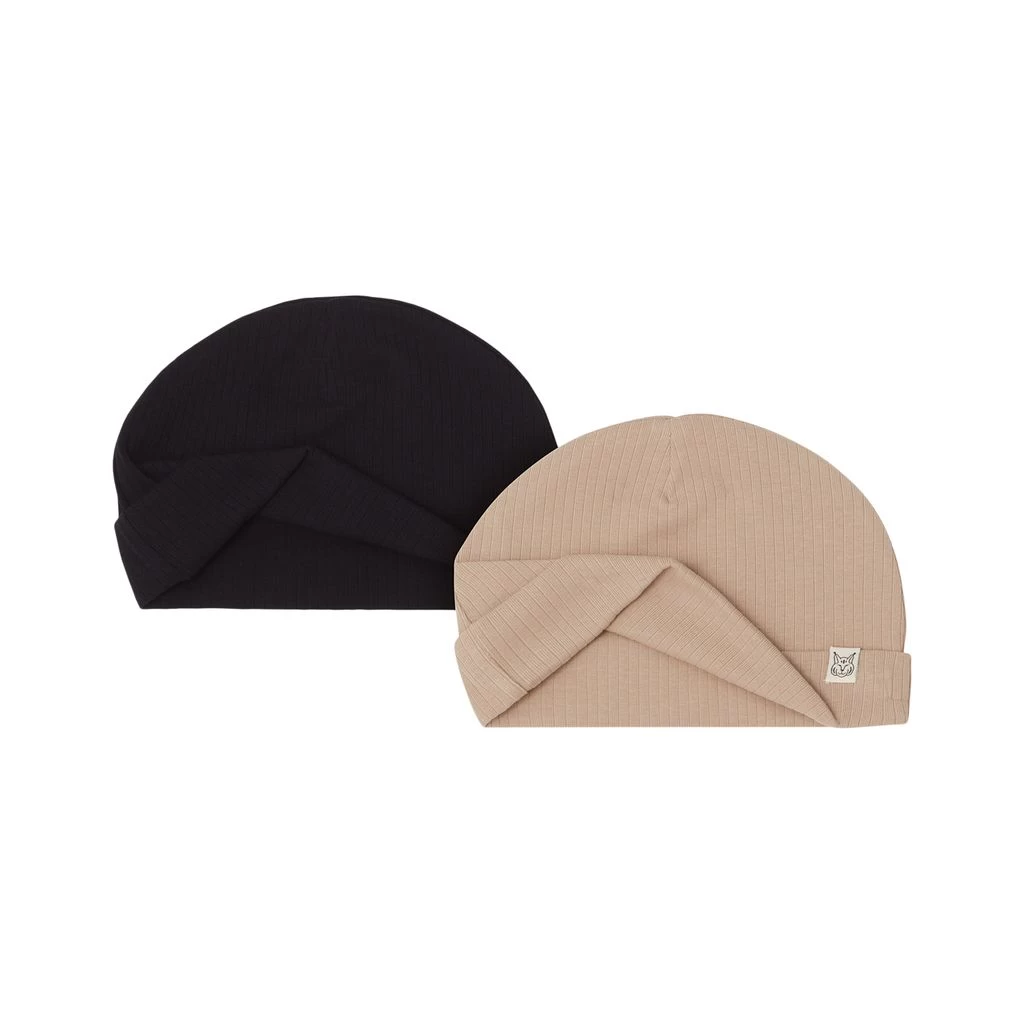 Keep little ears warm in style. Beige, black GOTS Detroit beanies by Kuling. The hats have a ribbed design. They have a folded hem.