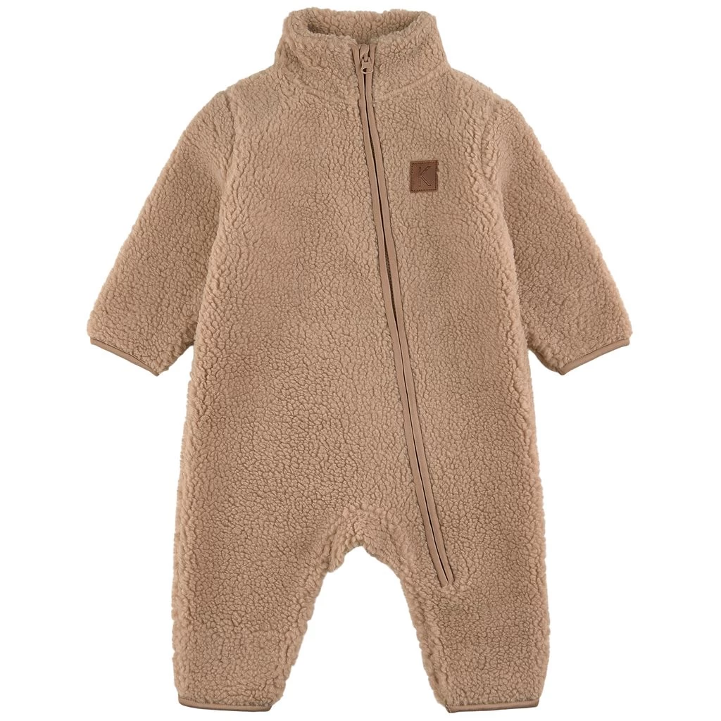 Keep warm with comfy fleece. Beige Austin fleece coverall by Kuling. The fleece coverall has a zip closure at the front.
