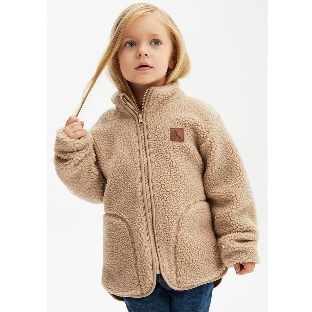 Keep warm with comfy fleece. Beige Austin fleece jacket by Kuling. The jacket has a zip closure at the front. It has two front pockets.