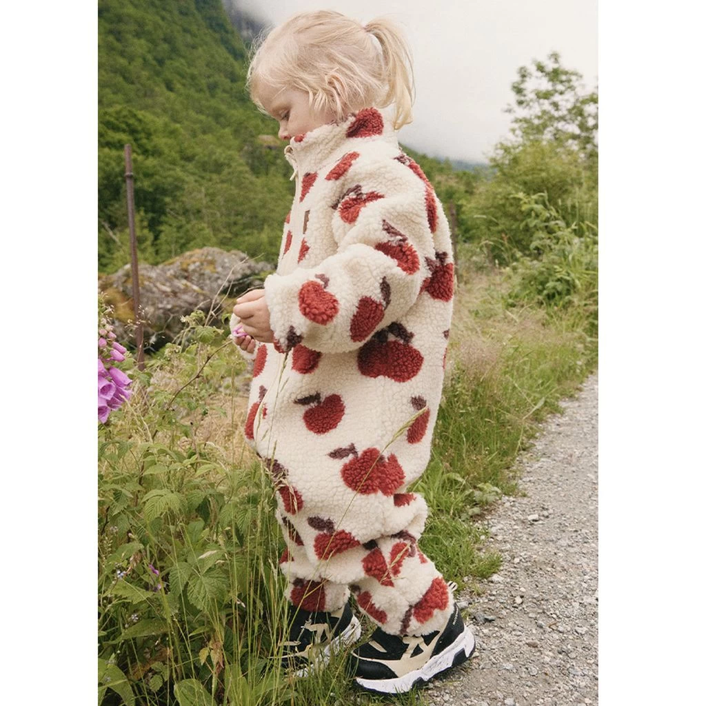 Keep warm with comfy fleece. Beige Austin fleece coverall by Kuling. The fleece coverall has a zip closure at the front.