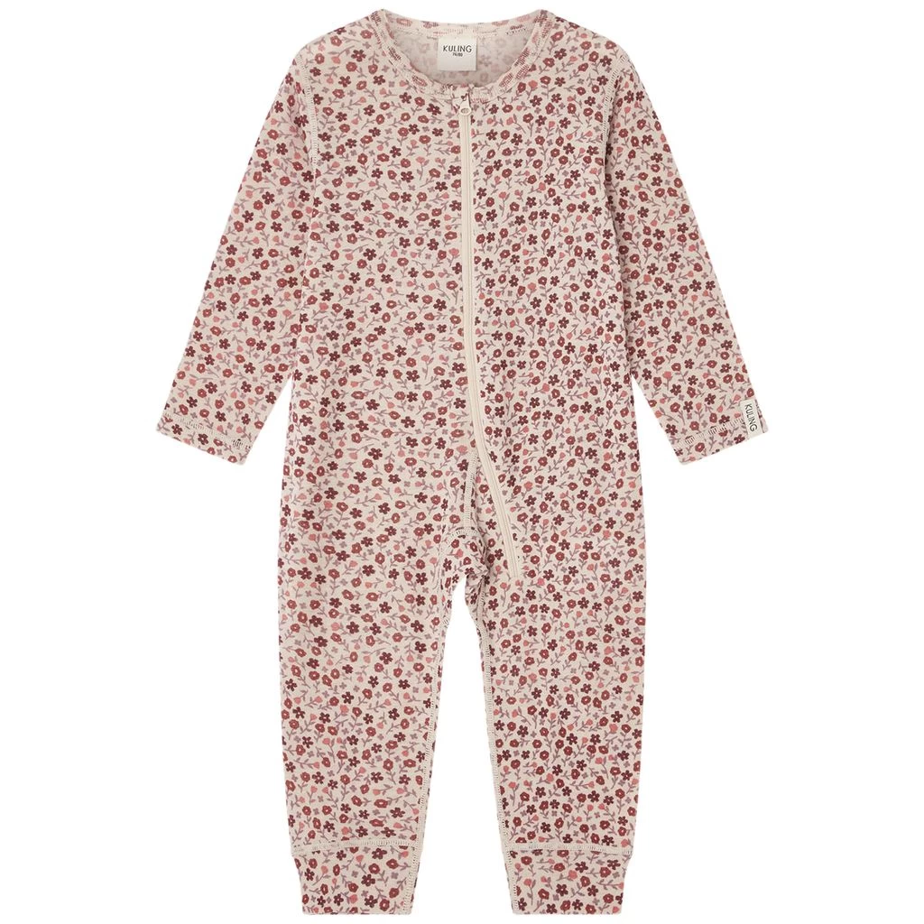 Be warm and comfy on winter adventures. Pink Brisbane onesie by Kuling. The onesie has a zip closure at the front.