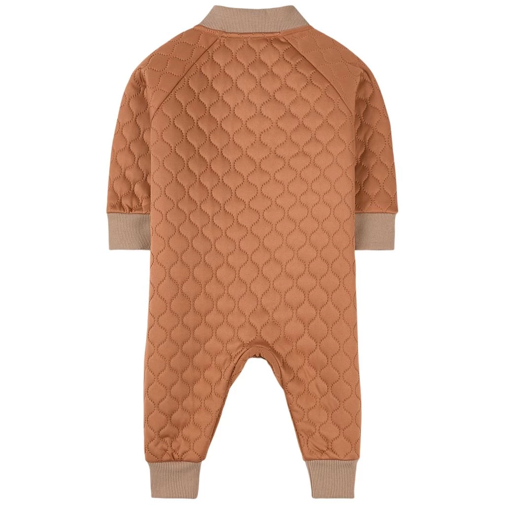 Busan coveralls by Kuling. The coveralls have a quilted design. They have a zip closure at the front, a split kangaroo pocket and ribbed cuffs.