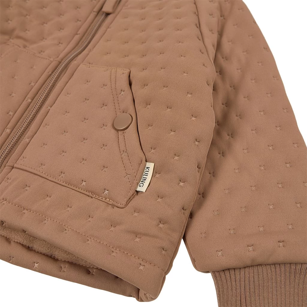 Get ready for outdoor adventures. Brown Busan thermo jacket by Kuling. The thermo jacket has a quilted design. It has a soft fleece lining, a zip closure at the front, a split kangaroo pocket and ribbed cuffs.