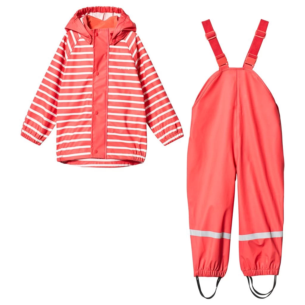 Keep out the elements on drizzly days with this playful red rain set from Kuling. Expertly crafted, the striped waterproof jacket features a protective hood, cuffed sleeves and reflective detailing for safety, while the trousers have adjustable suspenders and silicone foot loops for a comfortable fit. Layer over cosy thermal pieces and style with wellington boots.