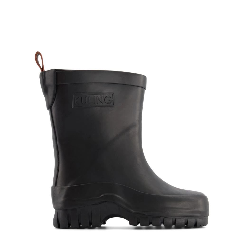 Time to jump through puddles. Black Caracas rain boots by Kuling. The boots have welded seams. They have a rubber upper, a bonded lining, removable insoles, a sole with rough tread for a sure step and a pull tab at the back.