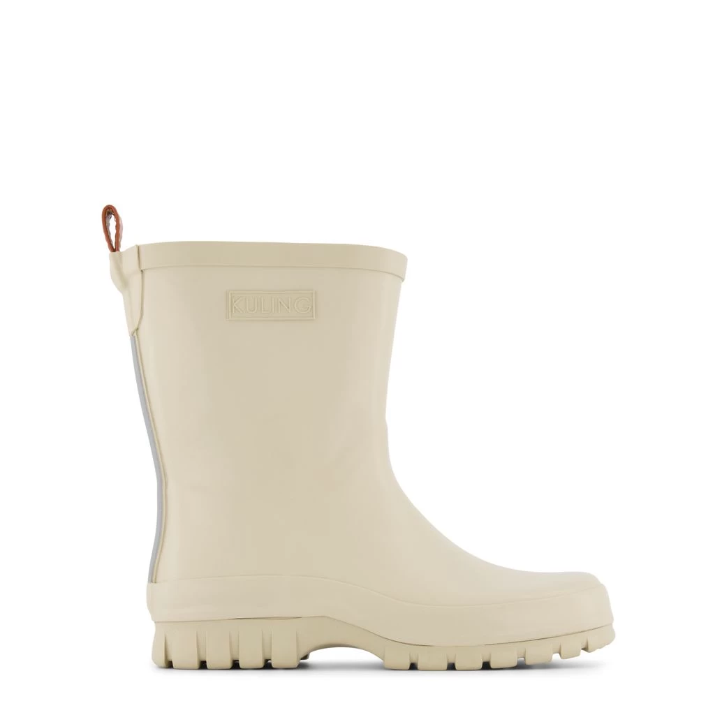 Time to jump through puddles. Beige Caracas rain boots by Kuling. The boots have welded seams. They have a rubber upper, a bonded lining, removable insoles, a sole with rough tread for a sure step and a pull tab at the back.