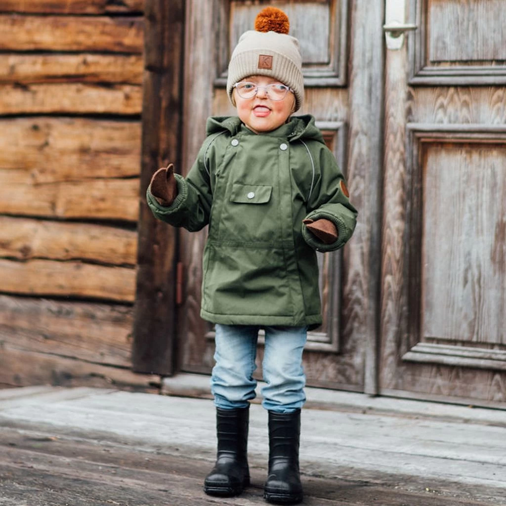 Green Copenhagen jacket by Kuling. The jacket has taped seams. It has quilted padding, a detachable hood, double zip closures at the front, a chest pocket, ribbed cuffs and reflective details for visibility.
