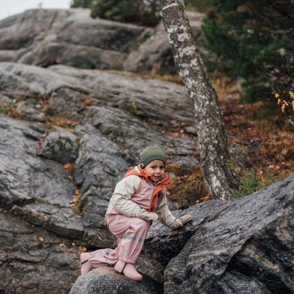 Rainy days won’t stand a chance. Pink Edinburgh raincoat by Kuling. The jacket has welded seams. It has a detachable hood, a zip closure at the front, two front pockets and reflective details for visibility.