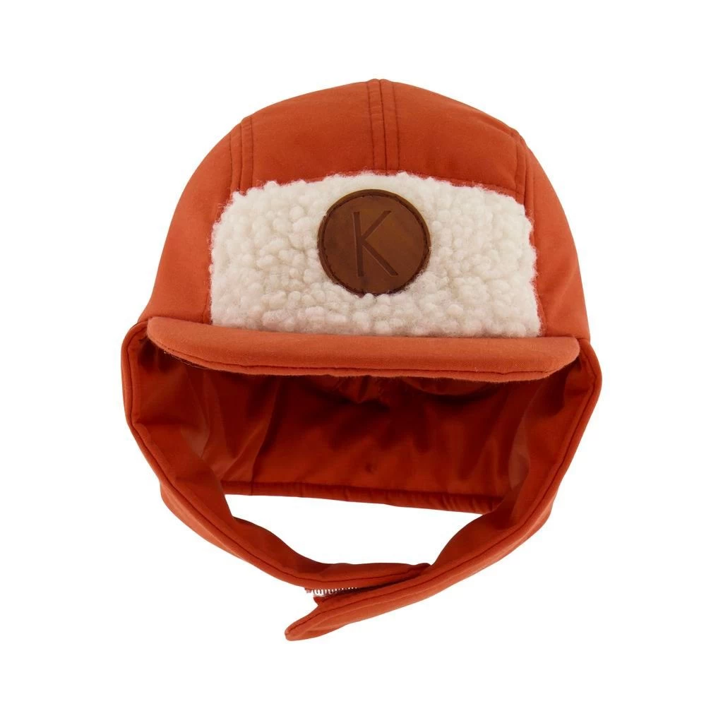 Keep little heads warm. Edmonton shell cap by Kuling. The shell cap has light padding. It has a flat bill, ear flaps with velcro closure at the chin and a teddy fleece at the front.