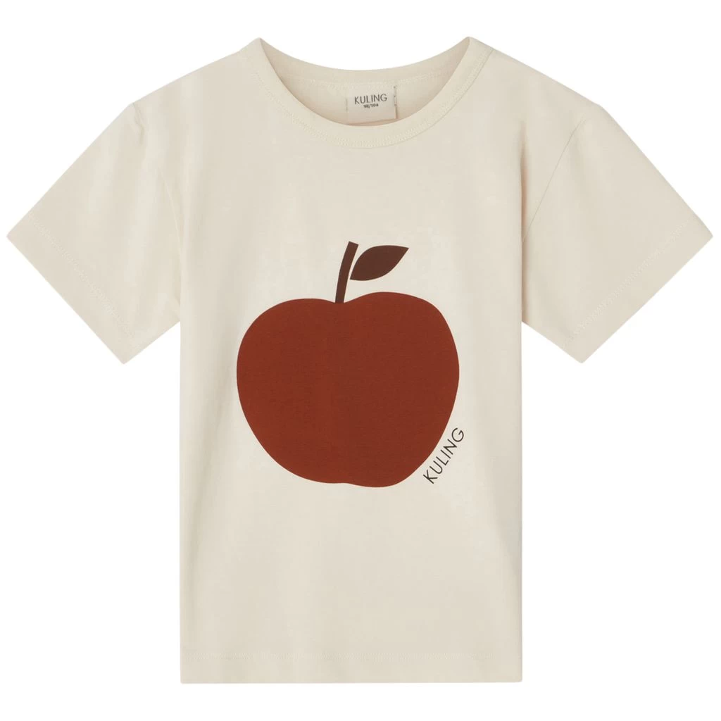 Get ready for play filled days. White GOTS Santorini T-Shirt by Kuling. The T-Shirt has a regular fit. It has a print with apple at the front.