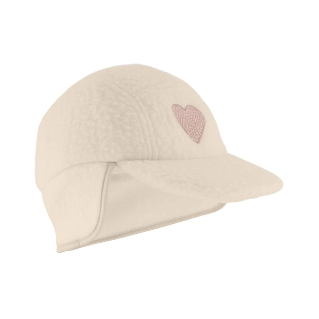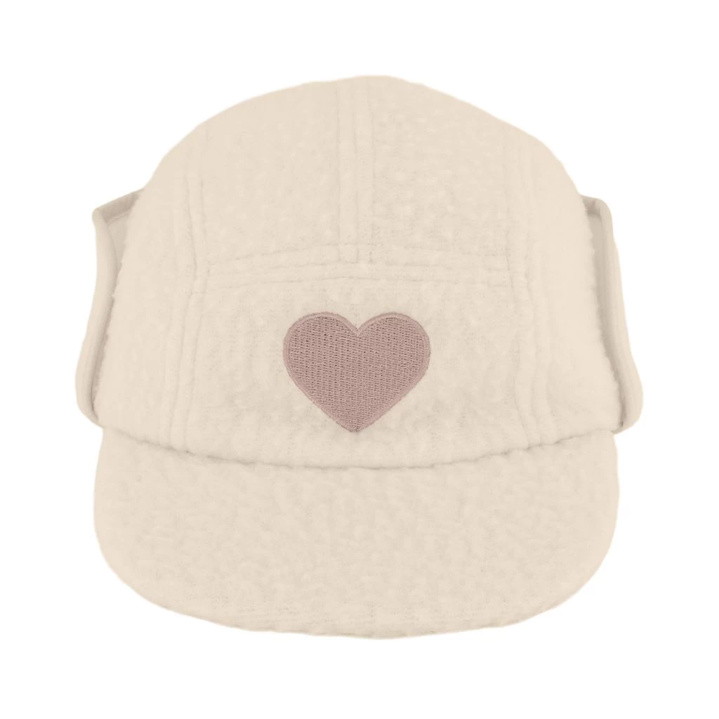 Sand Limited Edition Heart Pile Fleece cap by Kuling. The cap has a soft fleece material. It has a flat bill, a longer material at the back and an embroidered heart at the front.