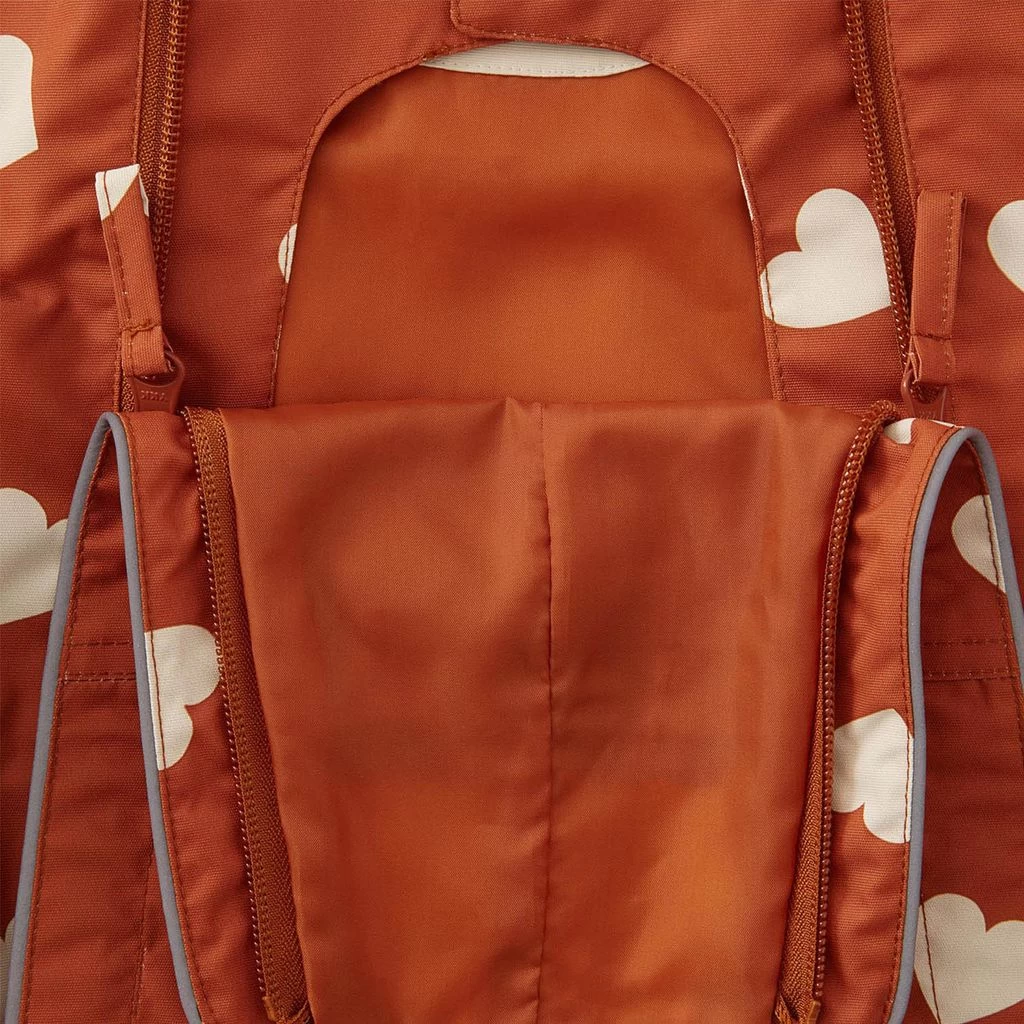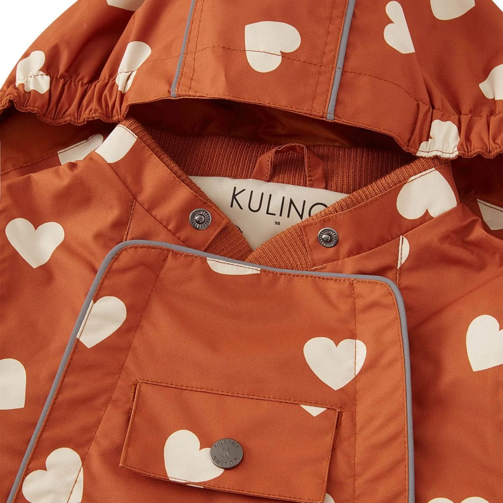 Get ready for outdoor adventures. Orange Milano shell coverall by Kuling. The shell coverall has taped seams. It has YKK® zippers at the front, a detachable hood, a chest pocket, elasticated cuffs, adjustable, detachable silicone foot loops and reflective details for visibility.