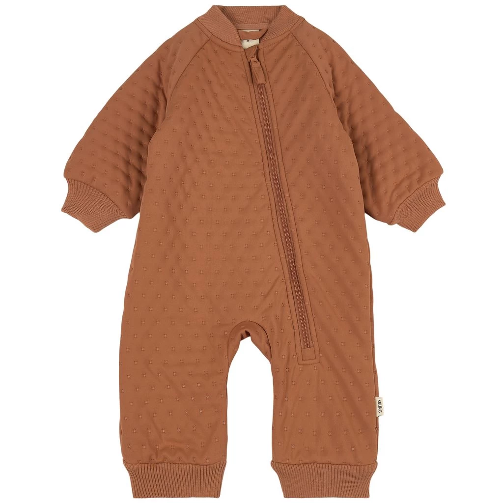 Get ready for outdoor adventures. Brown Odense coverall by Kuling. The coverall has a zip closure at the front. It has ribbed cuffs.