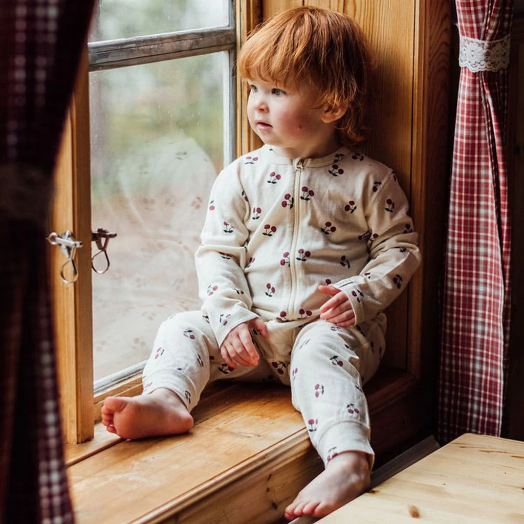 Let your baby explore and play in comfort. Cream onesie by Kuling. The onesie has a zip closure at the front. It has ribbed cuffs.