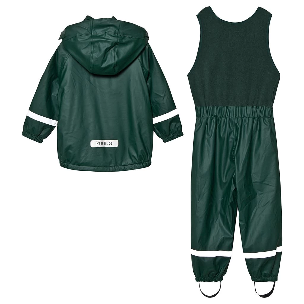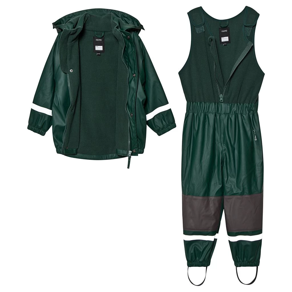 The outerwear experts at Kuling have upgraded their kids’ rain suit in green for both function and fashion this season. Skilfully crafted from a lightweight, waterproof shell, the design features welded seams and reflective detailing throughout. Complete with a zipper closure with chin guard to the front and an elasticated hem and cuffs, this innovative duo also offers a fleece bodice for comfort, Velcro closures at the shoulders and adjustable silicone foot loops for a secure fit. Pair with sturdy boots from the range.