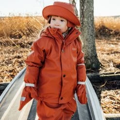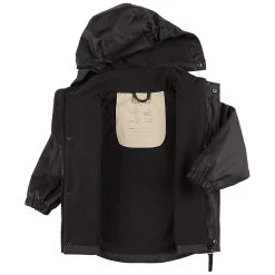 Time to jump through puddles. Navy Ottawa rain set by Kuling. The set has welded seams. It has a soft fleece lining, a jacket with a detachable hood, a YKK® zipper at the front and elasticated cuffs, pants with a fleece bodice, velcro closure at the shoulders, a YKK® zipper at the front, an elasticated waist and durable, adjustable silicone foot loops and reflective details for visibility.