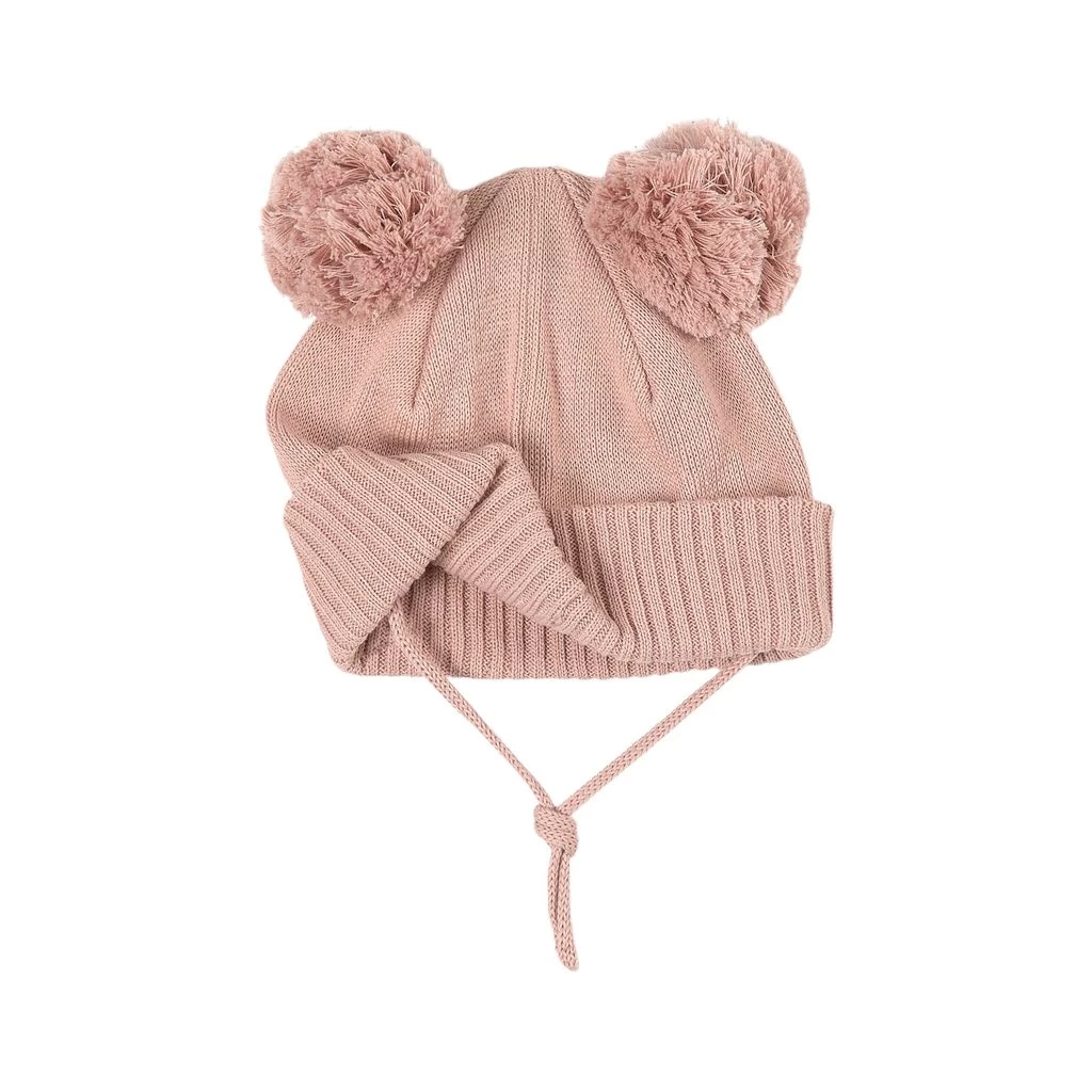 Beanie by Kuling. The hat has a double-layer design. It has pompom detailing at the top, a ribbed folded hem with a logo detail at the front and a tie string at the chin.