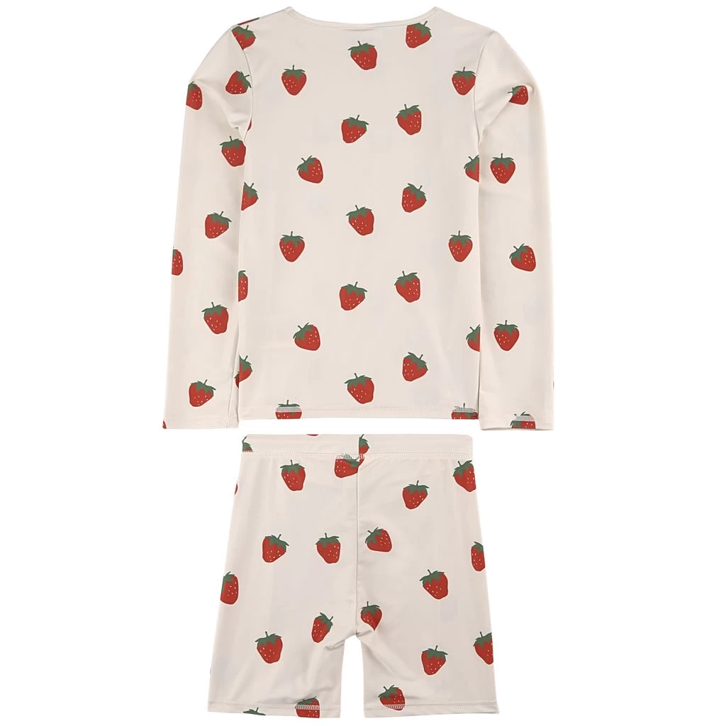 Perfect for those sunny days. Cream Rhodes Rashguard Set by Kuling. The Rashguard Set has a quick dry, stretchy material. It has a rash guard with a regular fit and a swim trunks with a lined front and an elasticated drawstring waist.