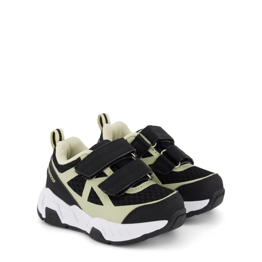 These sneakers are for adventurous kids!. Black Seattle trainers by Kuling. The trainers have a waterproof mesh upper. They have a padded collar, a velcro fastening for easy on and off, a pull-tab at the heel, a cushioned insole and a non-slip sole.