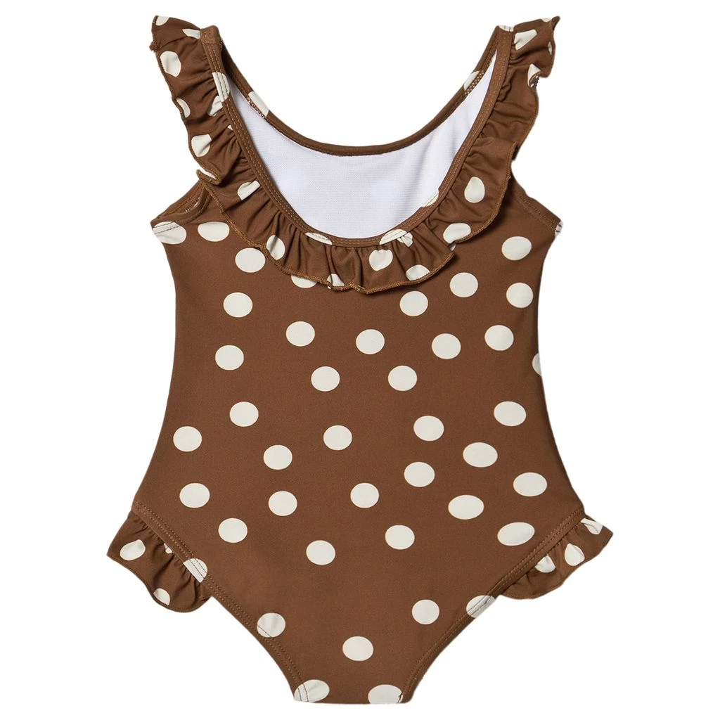 St Tropez swimsuit. The swimsuit has a quick-drying material. It has lining at the front and ruffle details.