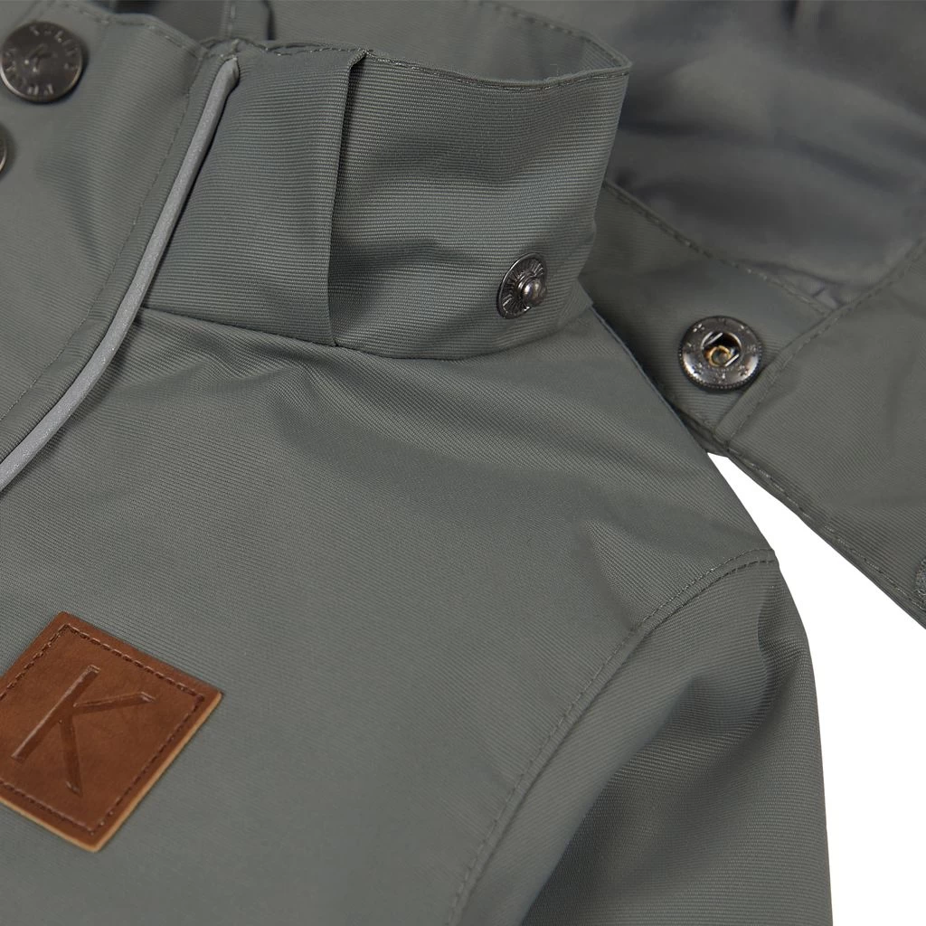 Get ready for outdoor adventures. Green Stockholm shell jacket by Kuling. The jacket has taped seams. It has a YKK® zipper at the front, a detachable hood, adjustable cuffs with a velcro closure, two front pockets and reflective details for visibility.