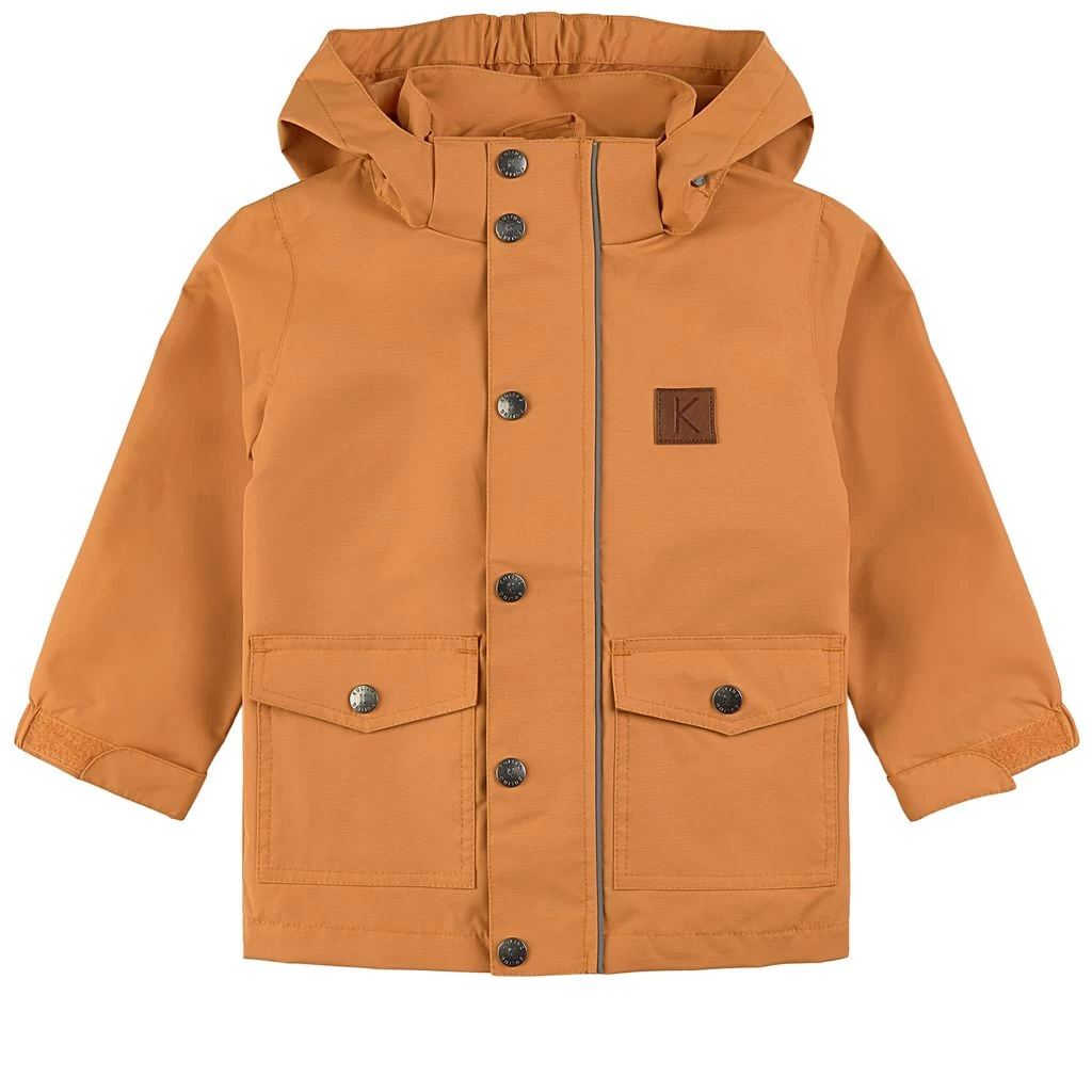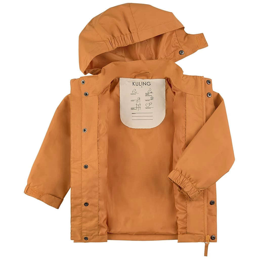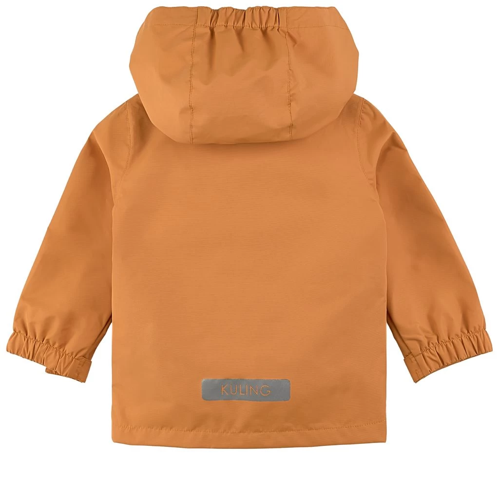 Get ready for outdoor adventures. Orange Stockholm shell jacket by Kuling. The jacket has taped seams. It has a YKK® zipper at the front, a detachable hood, adjustable cuffs with a velcro closure, two front pockets and reflective details for visibility.