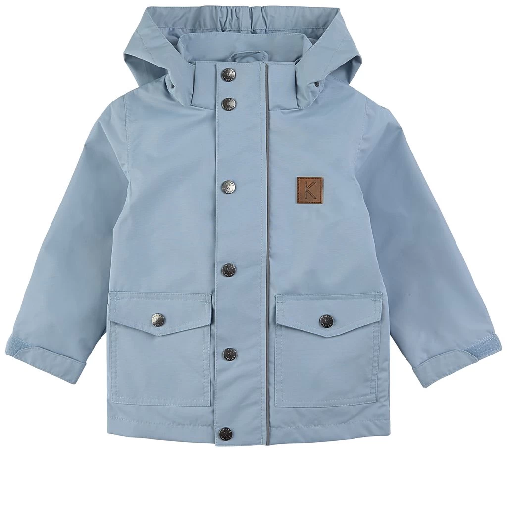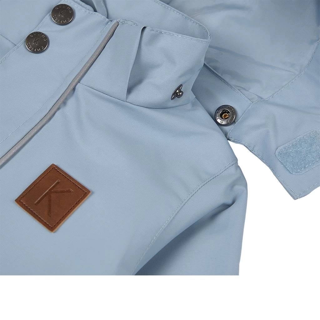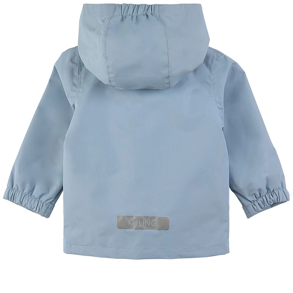 Get ready for outdoor adventures. Blue Stockholm shell jacket by Kuling. The jacket has taped seams. It has a YKK® zipper at the front, a detachable hood, adjustable cuffs with a velcro closure, two front pockets and reflective details for visibility.