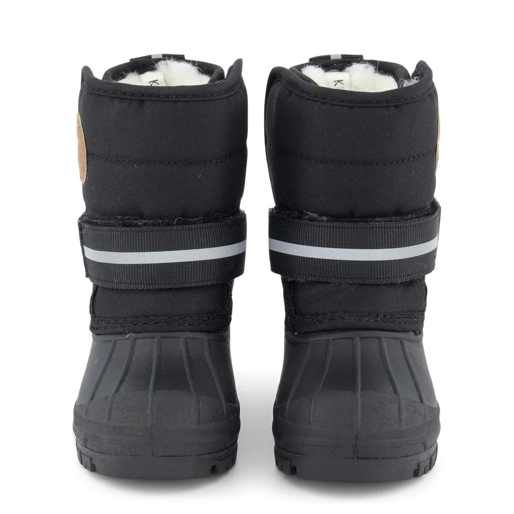 Let’s play in the snow!. Black Stöten winter boots by Kuling. The winter boots have a warm lining in wool mix. They have velcro closures for easy on and off, a rubber reinforcement at the heel and at the front, soles with rough tread for a sure step and reflective details for visibility.