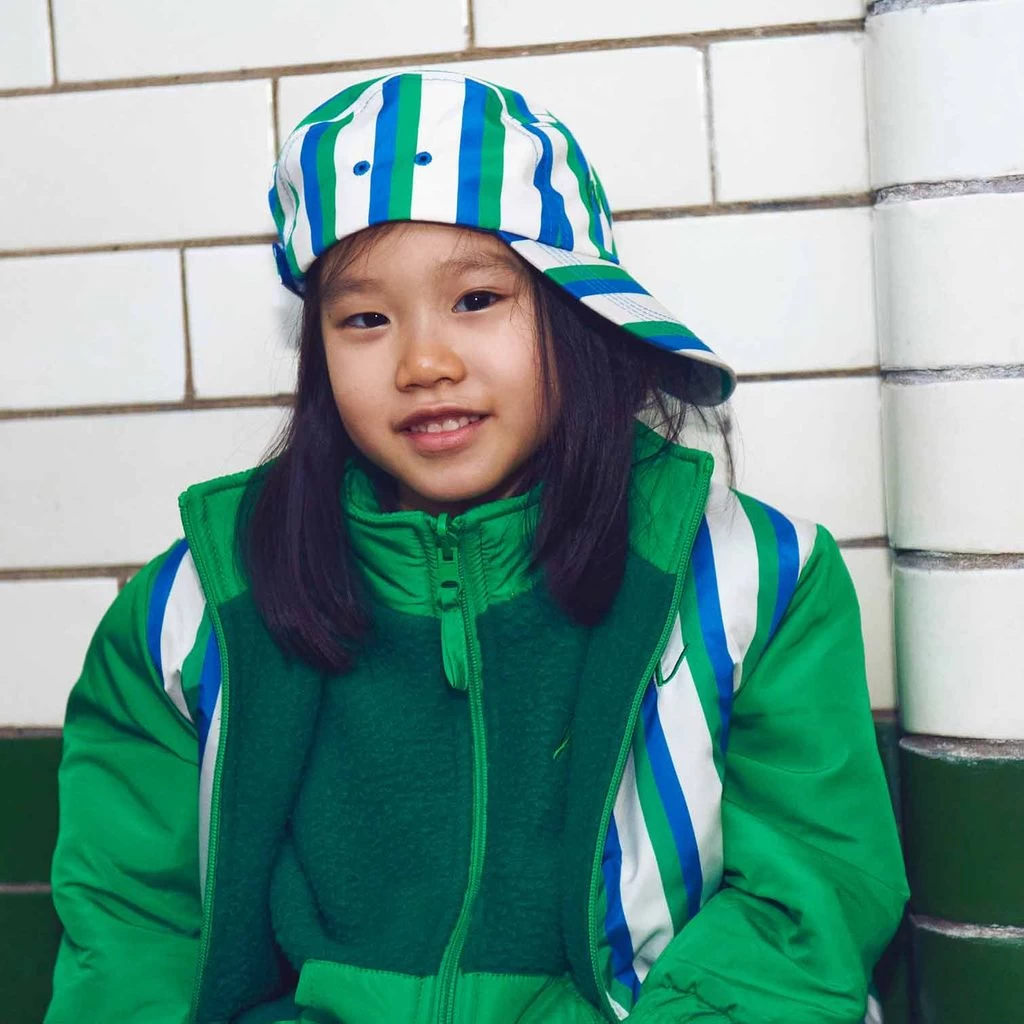 Green Stripe baseball cap by Kuling. The cap has a flat bill. It has a velcro strap at the back.