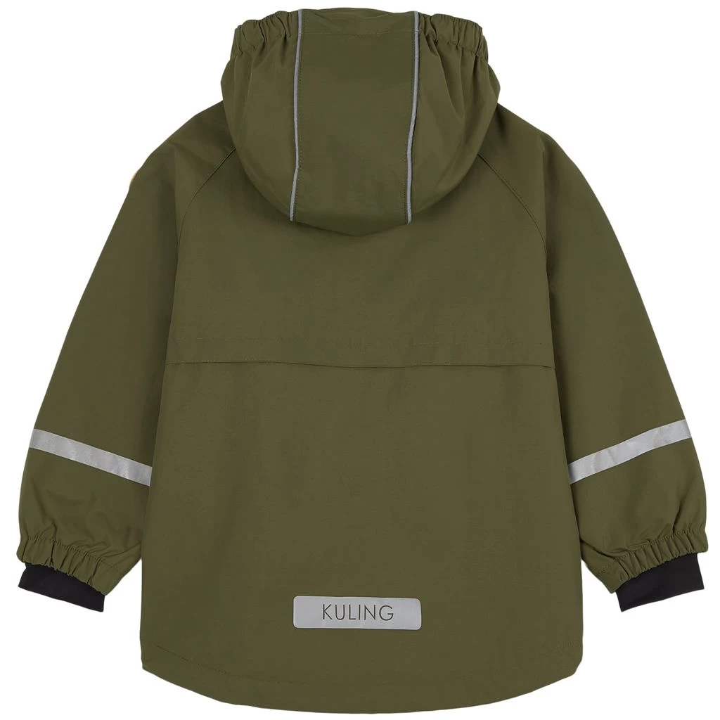 Get ready for outdoor adventures. Green Trysil shell jacket by Kuling. The jacket has taped seams. It has a zip closure at the front, a detachable hood, ribbed cuffs, three front pockets and reflective details for visibility.