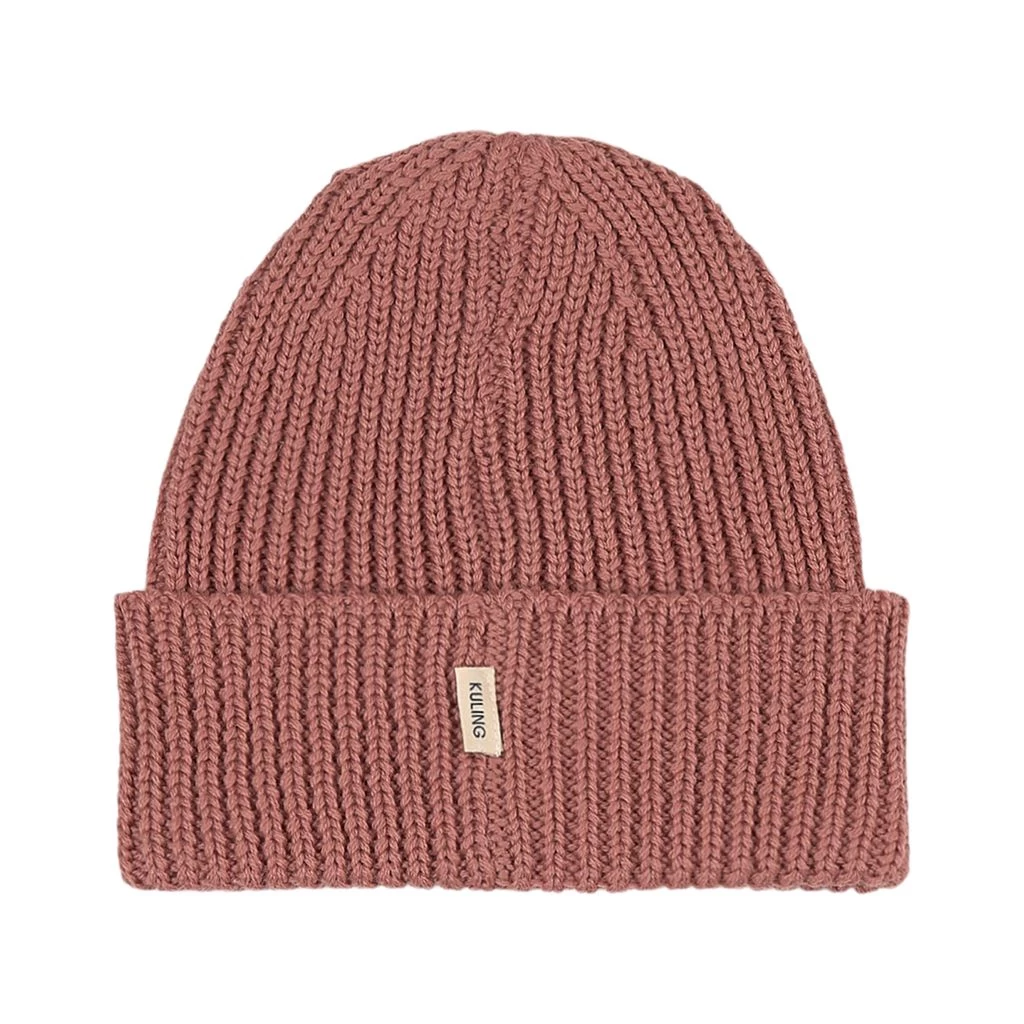 Keep little heads warm. Pink Umeå hat by Kuling. The hat has a rib-knit design. It has a folded hem.