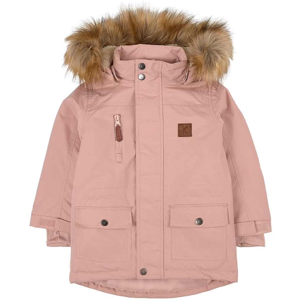 Be warm and comfy on winter adventures. Pink Val Thorens parka by Kuling. The jacket has taped seams. It has a detachable hood with faux fur trim, a zip closure at the front, an adjustable waist, two front pockets, a zip pocket at the chest and a reflective detail for visibility.