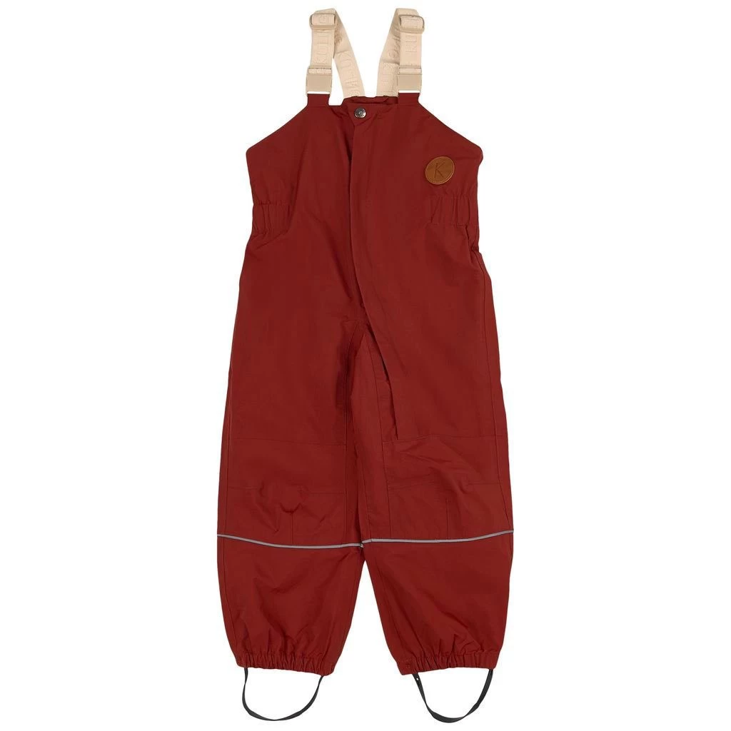 Get ready for outdoor adventures. Red Washington shell trousers by Kuling. The trousers have taped seams. They have adjustable shoulder straps, an elasticated waist, elasticated cuffs, adjustable, detachable silicone foot loops and reflective details for visibility.