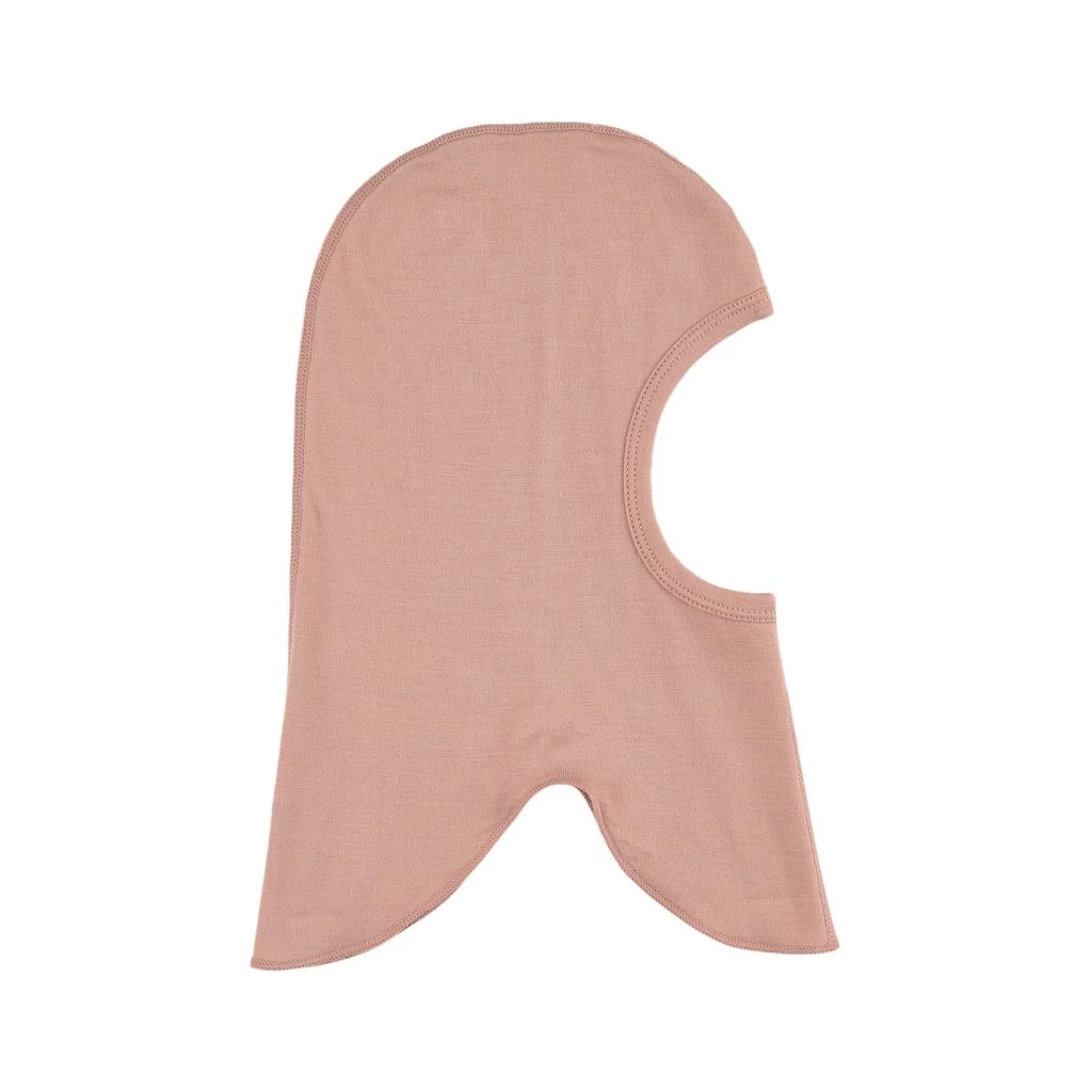 Pink Wool balaclava by Kuling. The balaclava has one layer. It has a ribbed opening.