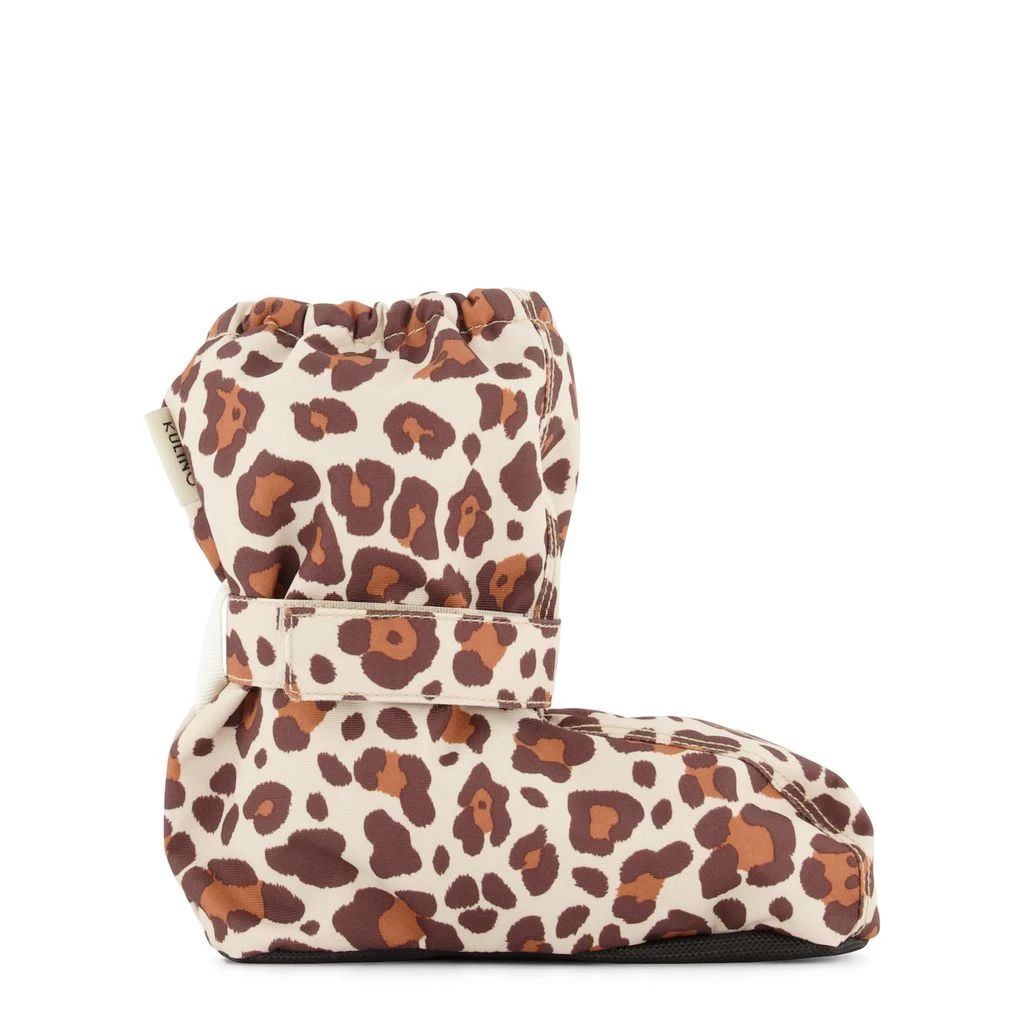 Keep little feet warm. Beige Yellowstone booties by Kuling. The booties have taped seams. They have a soft fleece lining, elasticated cuffs, a velcro closure at the ankle and soles with non-slip details.